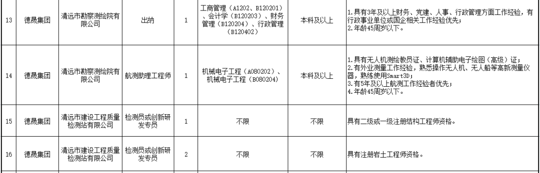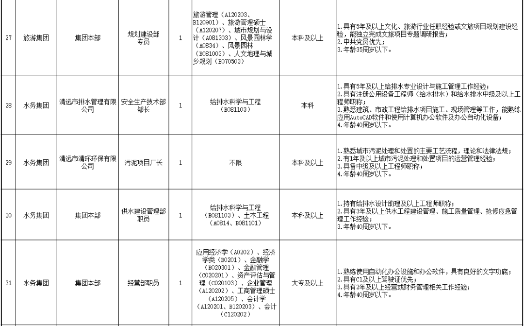 為進(jìn)一步加強(qiáng)清遠(yuǎn)市屬國(guó)有企業(yè)人才隊(duì)伍建設(shè),根據(jù)企業(yè)經(jīng)營(yíng)發(fā)展需要,按照“公開(kāi)、平等、競(jìng)爭(zhēng)、擇優(yōu)”的原則,公開(kāi)招聘市屬國(guó)有企業(yè)員工38人,誠(chéng)意邀請(qǐng)符合條件的人員報(bào)名應(yīng)聘,F(xiàn)將有關(guān)事項(xiàng)公告如下: