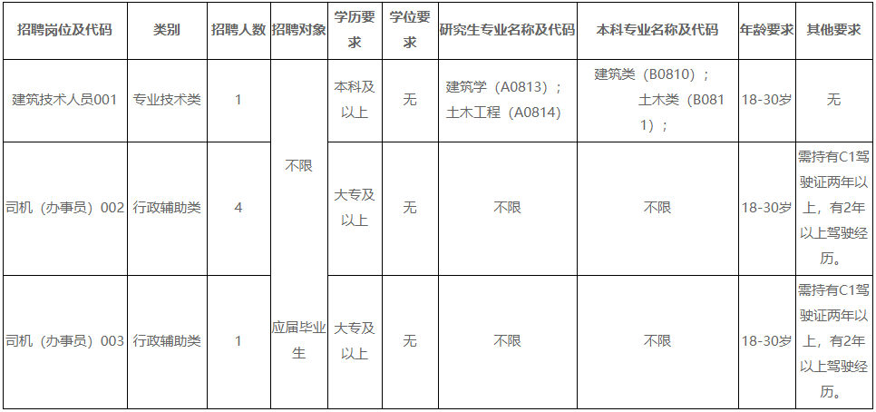 3.崗位為司機(jī)(辦事員),崗位代碼003,招聘對象為普通高等院校2022年大學(xué)?飘厴I(yè)應(yīng)屆畢業(yè)生。