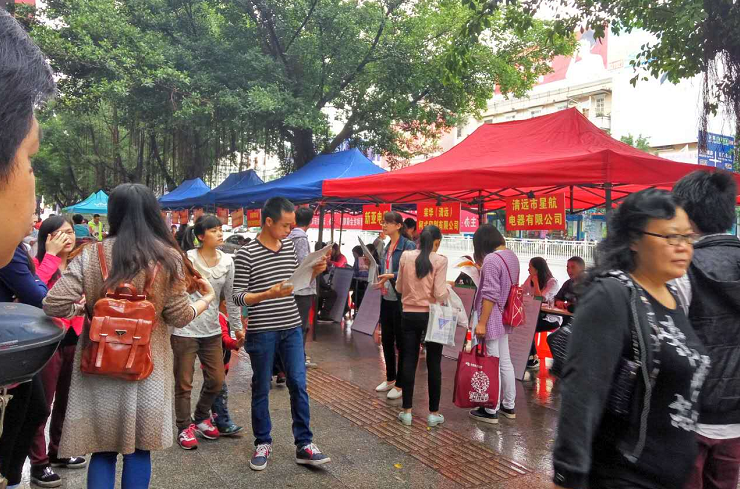 活動期間,雖然天公不作美,但雨后潮濕的地面并沒有擋住求職者的腳步,招聘會現(xiàn)場依然人來人往。據(jù)統(tǒng)計,陽山專場招聘會共23家企業(yè),提供就業(yè)崗位1004個左右,其中陽山本地3家企業(yè)提供就業(yè)崗位300多個,現(xiàn)場達(dá)成就業(yè)意向142人;連州專場招聘會共31家企業(yè),提供就業(yè)崗位900多個,現(xiàn)場達(dá)成就業(yè)意向307人;顒蝇F(xiàn)場還設(shè)置了政策咨詢和宣傳點,提供職業(yè)指導(dǎo)、創(chuàng)業(yè)扶持等多種政策咨詢服務(wù),并免費派發(fā)創(chuàng)業(yè)就業(yè)扶持政策宣傳資料近2000份,力求讓更多想創(chuàng)業(yè)、就業(yè)的人員了解并熟悉創(chuàng)業(yè)就業(yè)政策,在實現(xiàn)夢想的道路上更加暢通無阻。